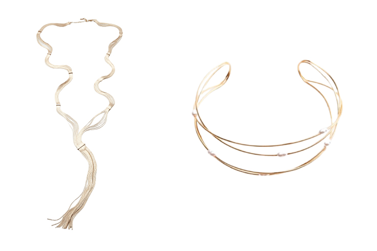 Dependiendo de cómo sea el escote de tu outfit navideño podrás apostar por un un collar largo o uno más corto. En Salera te proponemos un toque dorado. Es el color en tendencia y, más si apuestas por un chocker.