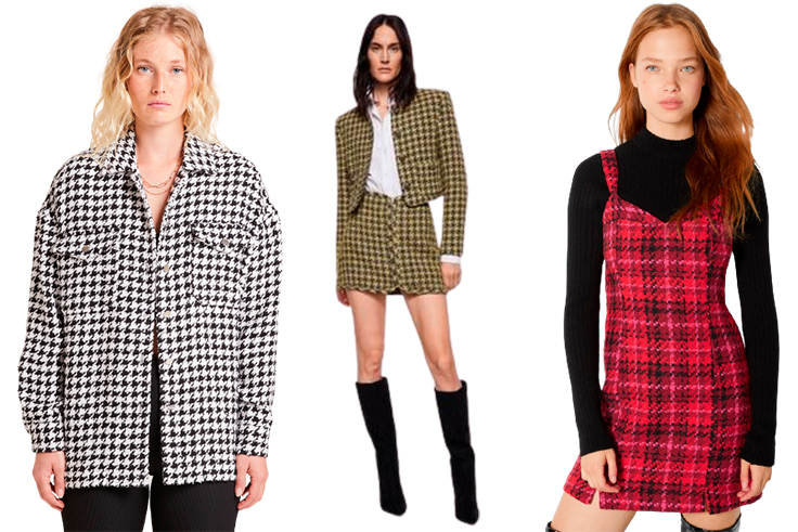 Dior y Chanel ya dejaron claro en sus propuestas para esta temporada que el tweed sería uno de los estampados protagonistas. Este tejido te otorga una clase única a tus looks y puedes apostar por él de diferentes formas: como blazer, abrigo, chaqueta, sobrecamisa,… Y tú, ¿con cuál de ellos te quedas? Nosotros hemos fichado esta sobrecamisa de Springfield, este conjunto chaqueta falda de Mango , y este vestido de Bershka.